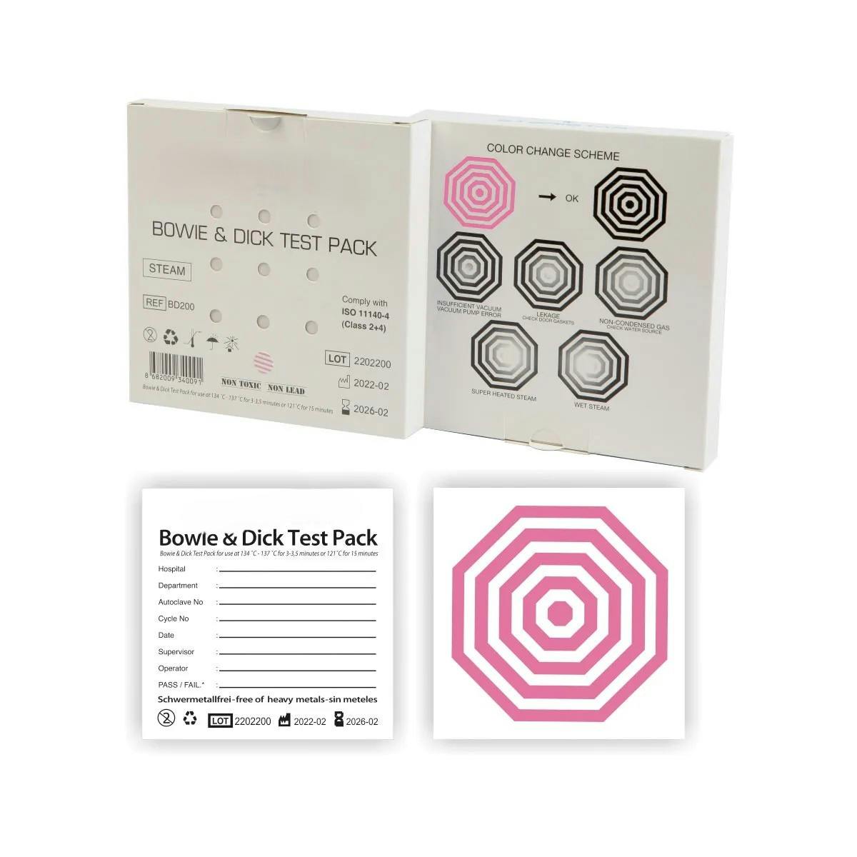 Il test Bowie & Dick permette di verificare la corretta evacuazione dell'aria dalla camera di sterilizzazione e conseguentemente, la completa penetrazione del vapore in carichi porosi (esempio: bandane o camici).